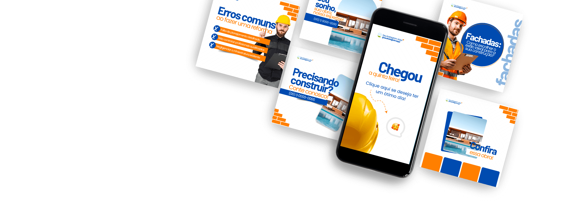 Modelos de Artes Estratégicas para você que trabalha com Construção – Reforma. Agora você não tem mais desculpa para não produzir conteúdo, todas as artes já estão com o conteúdo pronto para você se inspirar.