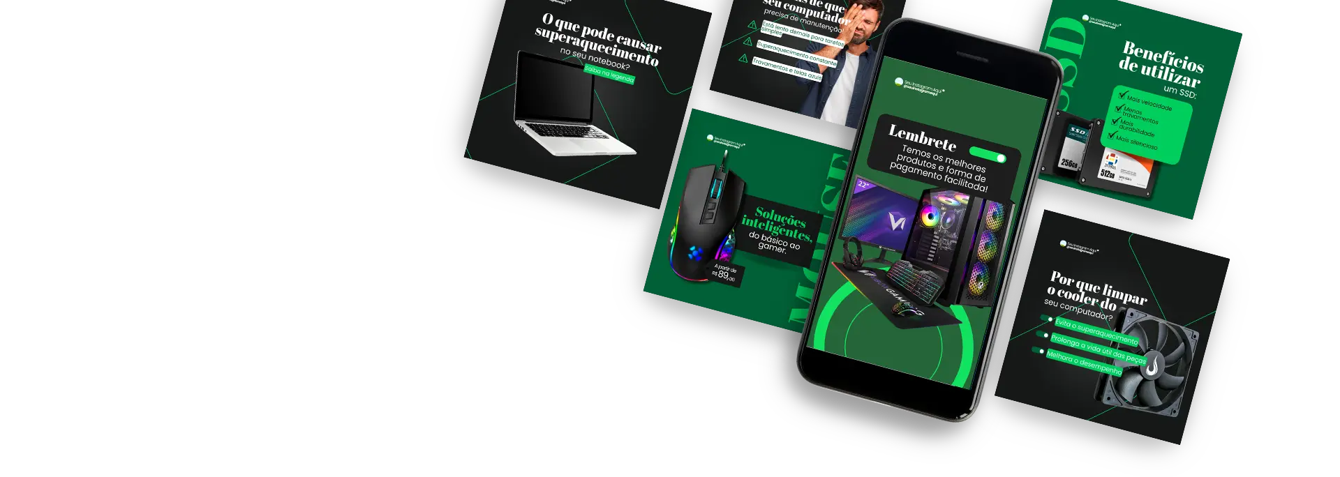 Modelos de Artes Estratégicas para você que trabalha com INFORMÁTICA. Agora você não tem mais desculpa para não produzir conteúdo, todas as artes já estão com o conteúdo pronto para você se inspirar.