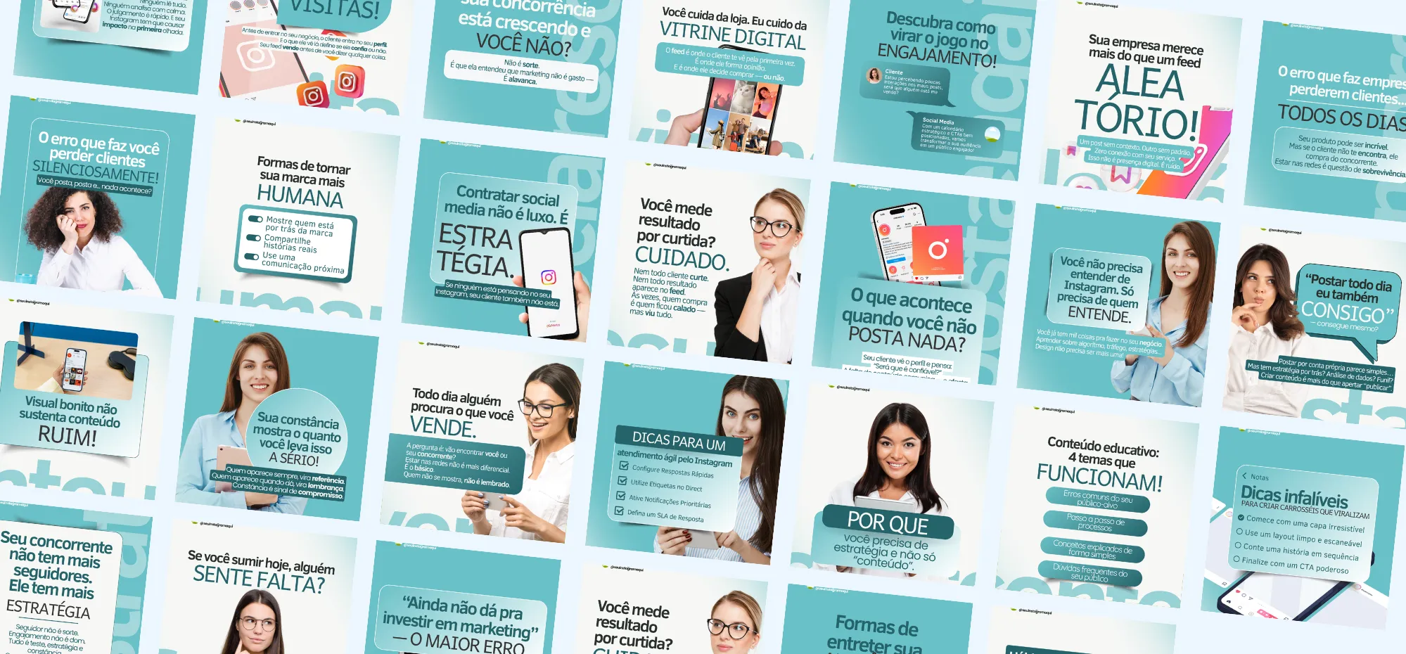 Modelos de Artes Estratégicas para você que trabalha com SOCIAL MEDIA. Agora você não tem mais desculpa para não produzir conteúdo, todas as artes já estão com o conteúdo pronto para você se inspirar.