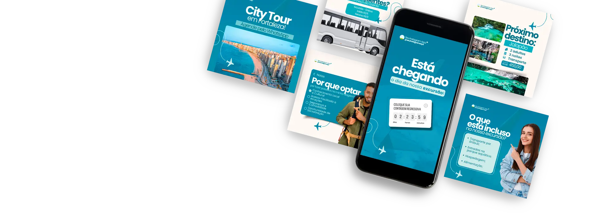 Modelos de Artes Estratégicas para você que trabalha com Turismo. Agora você não tem mais desculpa para não produzir conteúdo, todas as artes já estão com o conteúdo pronto para você se inspirar.